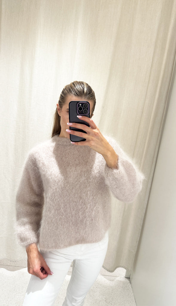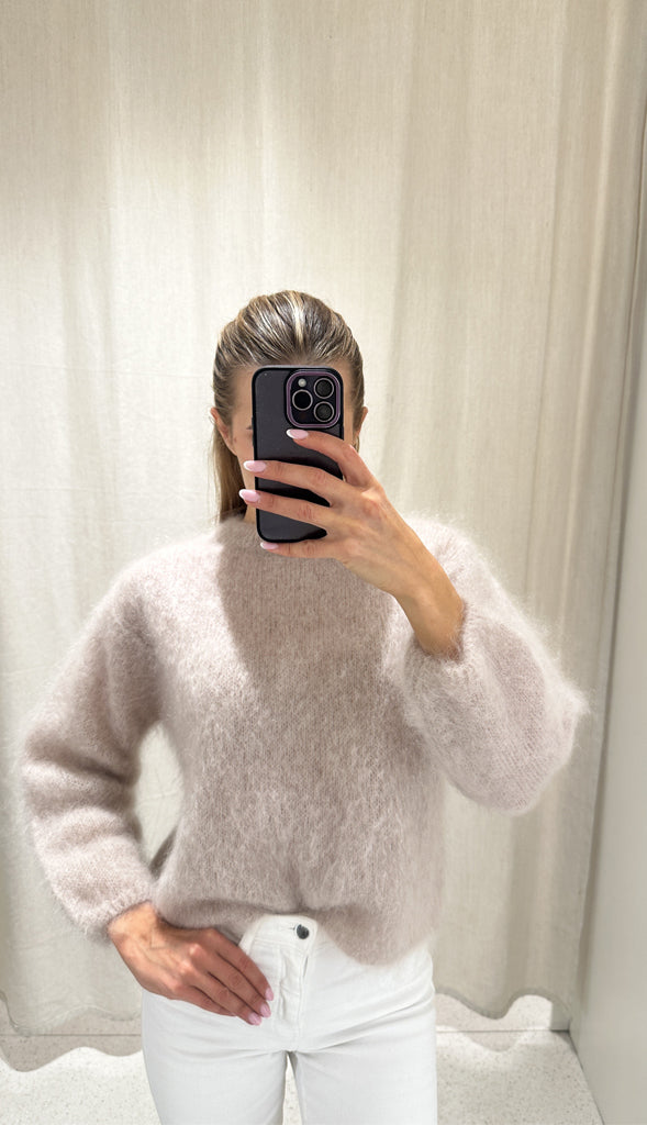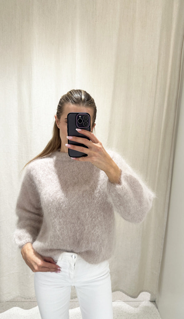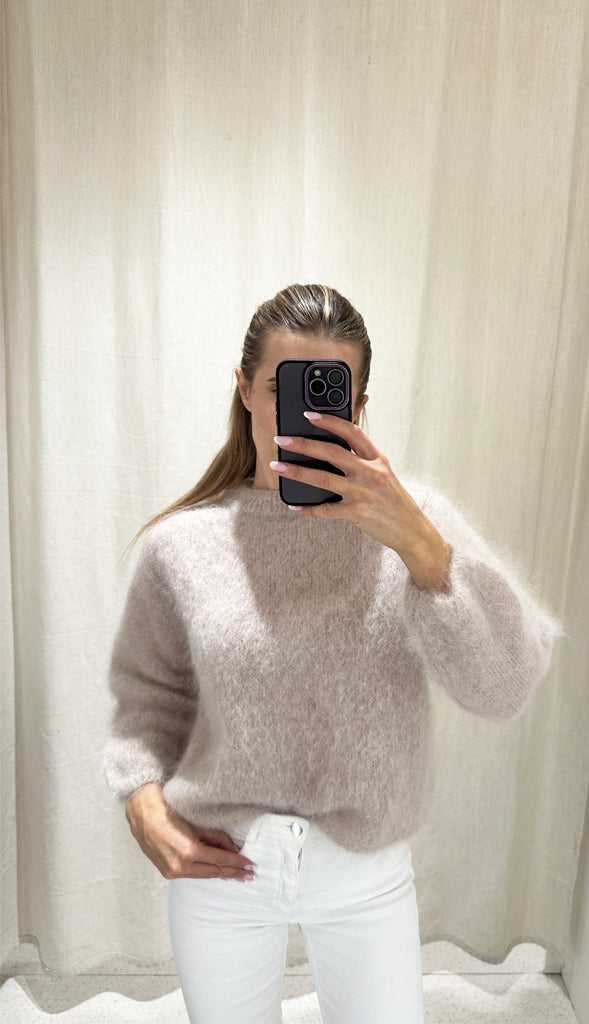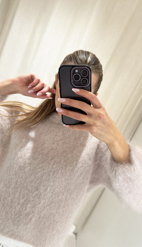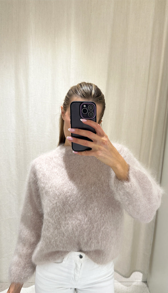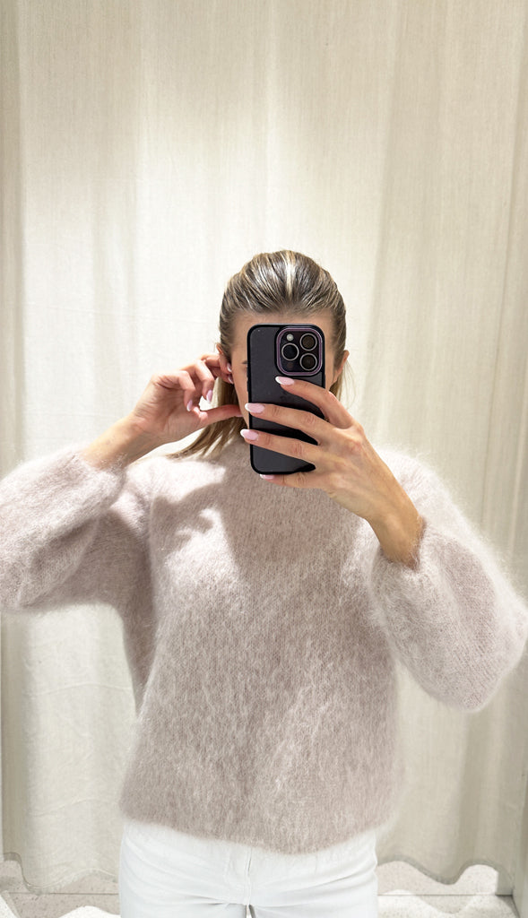 Moherowy sweterek o klasyczny kroju. Mięciutki i puszyty. Wykonany z moheru, który jest miły i delikatny dla ciała. Jakość premium. Produkt uszty we włoskiej przędzalni.